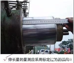 3) 張拉采用張拉力與伸長(zhǎng)量雙控制的方法,不能直接量取千斤頂?shù)挠透鬃兾涣?,一般采用兩端?duì)稱張拉,張拉計(jì)算公式按L實(shí)=L-L1+(L1'-L1)(L1張拉至20%ok(15%ok)時(shí)千斤頂?shù)幕钊L(zhǎng);L張拉至100%δk時(shí)千斤頂?shù)幕钊L(zhǎng);L1'張拉至40%δk(30%δk)時(shí)千斤頂?shù)幕钊L(zhǎng))。